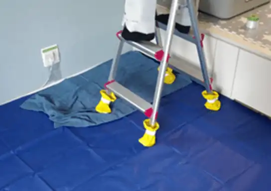 作業場所にシートを敷き汚れなどが直接床に落ちないようにします。